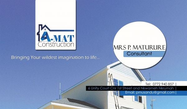 A-Mat Construction owned by AnasheMat (Pvt) Ltd is a company which holds great potential in the Zimbabwean construction industry and aspires to have a footprint in Africa as a whole. AnasheMat was established in 2012 and the construction division was inspired by the Directorsâ vision to help Zimbabwean potential home and building owners realize their dream of possessing beautiful properties without using much.A-Mat Construction are responsible for many aspects of your building projects, including residential construction, building contracting, ordering building supplies, and scheduling inspections. We handle all the construction work including site preparation, plumbing, electrical wiring, painting, and even interior designing and we ensure that every job is done efficiently and toShow moreyour satisfaction.At A-Mat Construction our building services are not limited to just custom homes and buildings projects. We also provide some of the best homes additions around. Below is the list of services we offer;⢠Residential construction⢠Driveway paving⢠Tiling including under floor heating systems⢠Painting⢠Building projects⢠Kitchens⢠Swimming pool construction; renovations and maintenance⢠Plumbing⢠Interior designing⢠Landscaping⢠Renovations⢠Demolitions⢠Roofing⢠Ceiling installation and maintenance⢠Site works-excavating, grading, trucking, septic systems⢠Brick wall construction⢠Custom pre-cast walls⢠Custom made gatesThe services listed above are by no means a complete list of what we can do